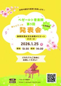 Beseelt音楽院では、日頃の練習の成果を披露する年に一度の発表会を開催いたします。