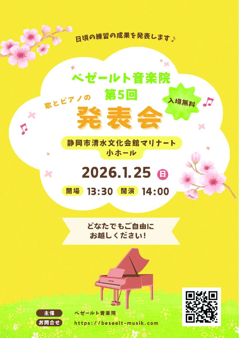 Beseelt音楽院では、音楽を通して一人ひとりが自己表現できることを大切にしています。生徒たちの成長と音楽の喜びが感じられる温かなひとときを、ぜひ会場でご一緒ください🌷